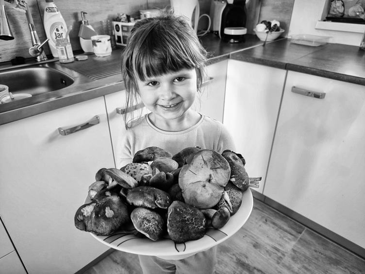 1. Kromě hraček byla naše chata vybavená i pořádnou vanou 2. Některým ale stačila ke spokojenosti skříň 3. Dopoledne jsem vzal holky do lesa na houby, ale sbírali jsme spíš maliny, ostružiny a borůvky 4. Protlapkali jsme celé dopoledne ale všichni jsme byli spokojení 5. I houby jsme nakonec našli 6. Na pozdní oběd jsme si ale zajeli do Bruntáli do Radegastovny 7. Bez blbnutí na místní fontáně by to nebyl ten správný výlet 8. V místní prodejně pro LEGO nadšence si Anežka koupila něco z Gábinina kočičího domečku 9. Zatímco já sušil houby, přijeli konečně i Pája s Dominikem