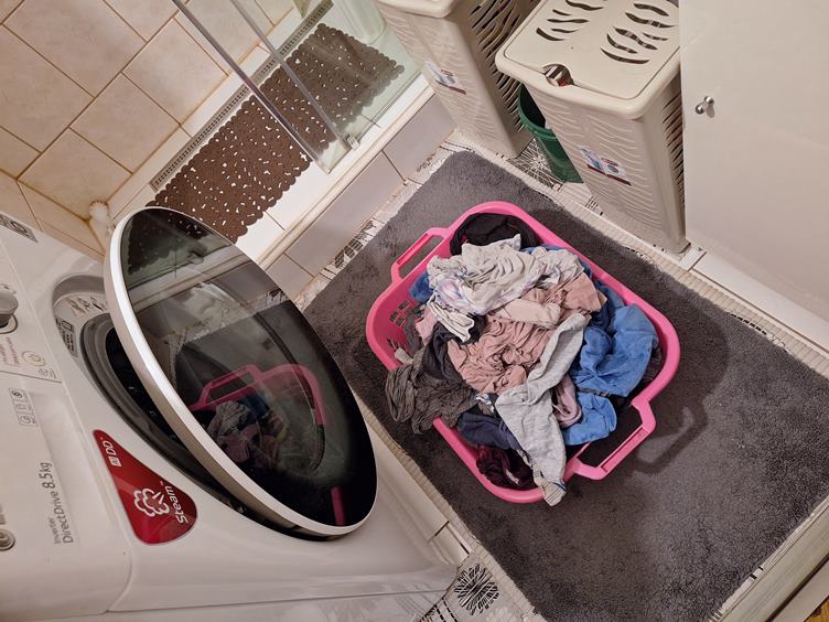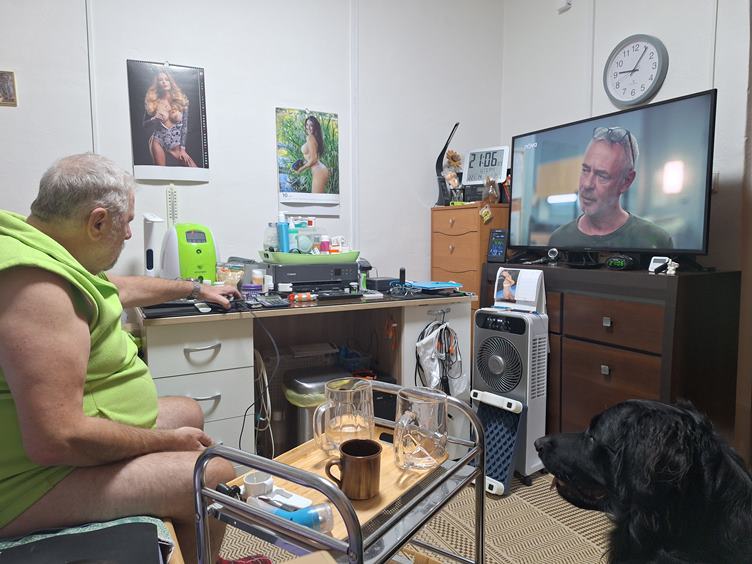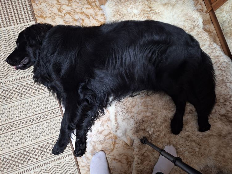 Přesně o půlnoci jsem byla venku, nemohu spát, bolí mne levá kyčel a nevím, jak si lehnout. Ráno koukám., jak podzim rychle postupuje, deště to urychlují. Rami si hraje s kroužkem tlapkama jako miminko.. Na Českobratrské každé všední ráno bývá zácpa, Ostrava je rozkopaná. Na oběd byl pečený kapr, byla to dobrota, zůstalo jen tohle. Tohle vyplivla pračka, tak to pověsím.. Cvičím ruce při přetahování s Ramónkem. Večer u telky.. Nakonec tu chcíp pes a jde se spát...