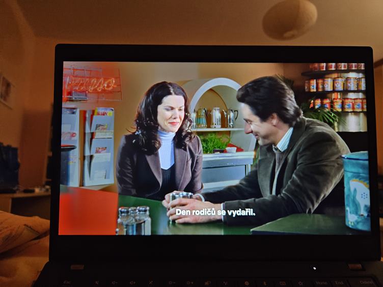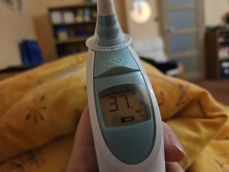 Spaní lepší, ale ráno je blbě i mě. Mám 39,2. Tak to asi nebylo jen tím očkováním... Dělám si covid test, je prošlý, ale negativní. Pondělí prospím já, Bártovi je líp. V práci si beru dovolenou. Teplota odpoledne lepší, tak koukám na Gilmorky a Čtvrteční klub amatérských detektivů.