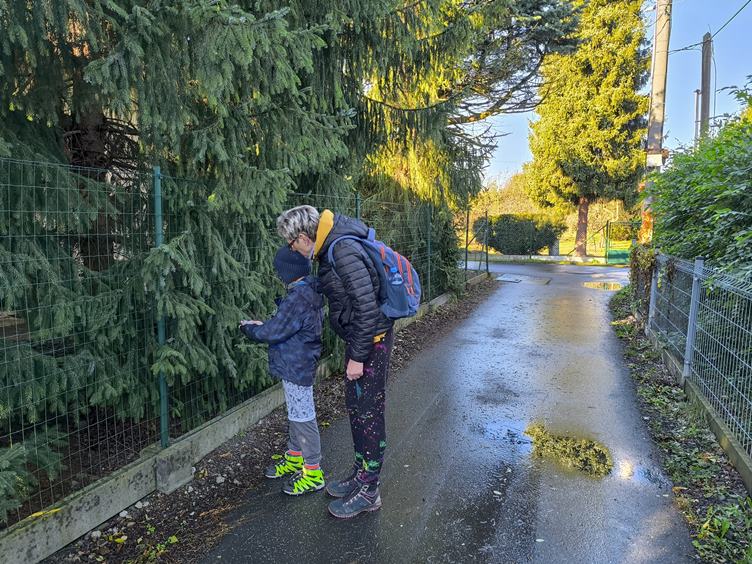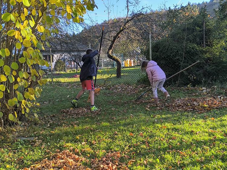(1-6) Cíl procházky Skalice Café. Našli jsme alternativní cestu zpět. Valí se sudy, .. (7) Pomoc se hodí (8) Také jsem skákal do listí :-) (9) Zavezu děti domů, dcera má nemocenskou