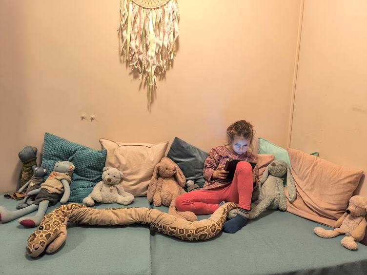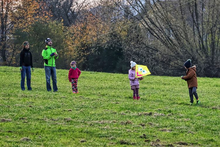 (1) Na nákup (2-3) Hela šla s dětmi na hřiště, já uklízím dřevo, pytluji listí … (4) Laduščiny výrobky (5-6) Jdeme pouštět draky. Jeden je na draka, ale druhý se nám podaří zprovoznit (7) Západofka (8) :-) (9) Laduška v herničce s tabletem si užívá přidělené minuty