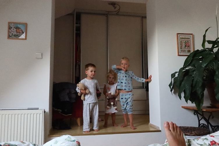Budíček, hrajem si, uděláme kuřízky a odpoledne si je vyzvednou rodiče, tak si jedem vyfoukat hlavu na motorce