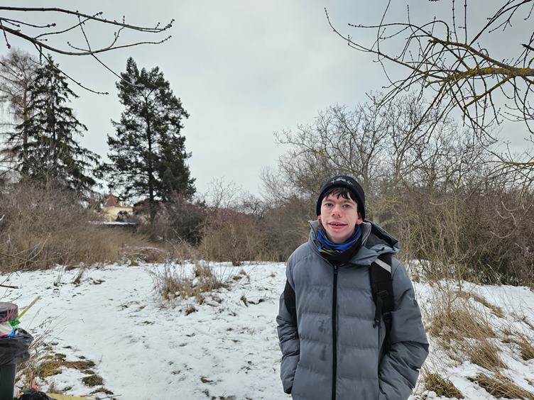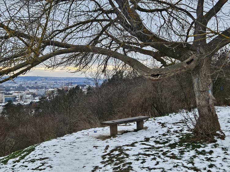 Středa 7.1.2026 Nechtělo se nám vstávat, zima byla. Potravinová pomoc u metra. Rozkopaný park mě nepřestává fascinovat. Ze školy - jdeme pěšky že Střížkova přes Prosecké skály. Na sněhu to klouže, ale pěkná procházka.