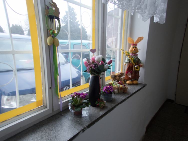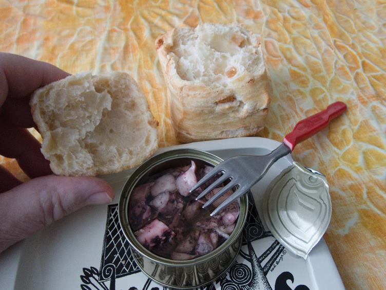Velikonoční výzdoba v chodbě agroprodejny... Socha před kostelem restaurovaná někdy kolem osmašedesátého roku; původní prý byla jako vysvěcená uložena do hrobu... Pagáč s chobotnicí...Špagety... Záclona na italském pobřeží... Tácek z holešovského Archa Baru... Večer před hospodou... A doma po zaparkování...