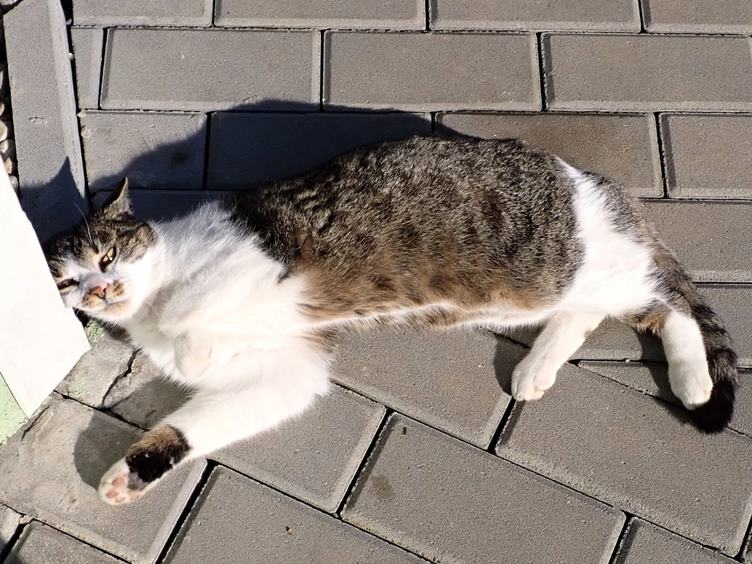 Už vykolíkovali trasu, kudy povede optický kabel... Kočka našla roh pro slunění... Cestou na zahradu s dvoukolákem se u nás zastavila Staňka... Brýle na stole při obědě... Film: Když se čas naplnil... Ondra... Na tácku obal od karamelky...