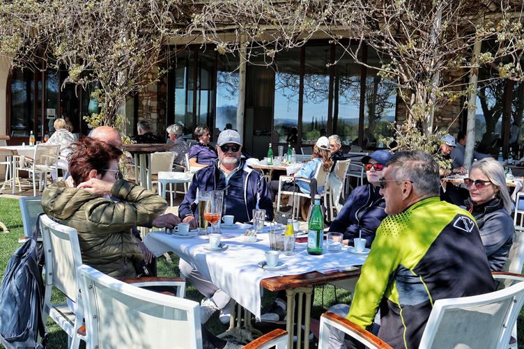 Svítá... jdeme na golf... hrajeme golf... čekáme na golfu... zasněžené Alpy... hřiště... máme krásně... po golfu... a večeře