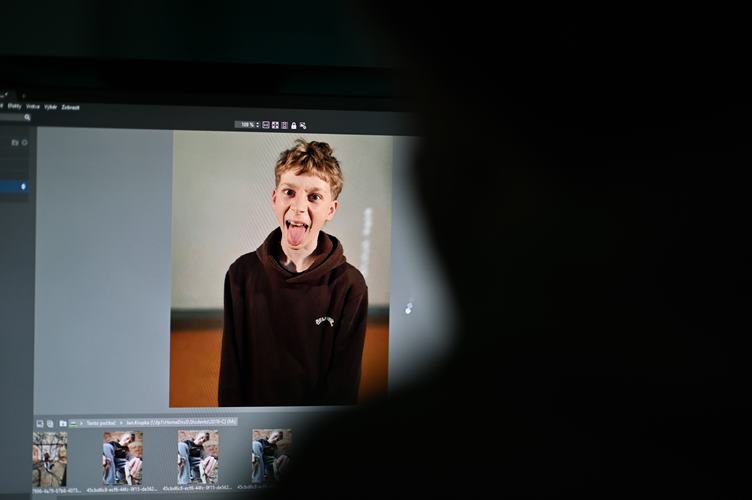 Sedmáci si půjčovali mikroskopy ... A jdou na další hodinu ... Pak je mám i já ... Zase upravujeme fotky ... Docela to půjde ... Na CWAKu děláme plakát na výstavu ... A za tepla ho neseme do Zmrzlinárny ... Z lávky fotím most ... Adinka doma v zapadajícím světle.