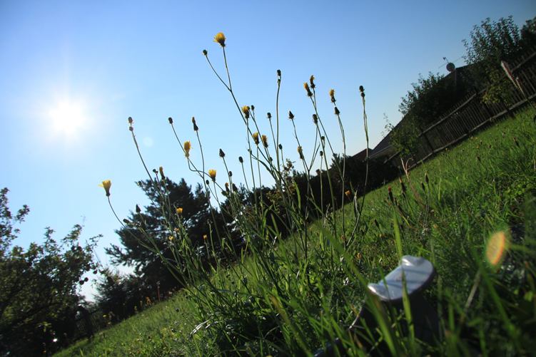 Celý tento týden se bez francouzských holí neobejdu.Mohu sice na sádru došlapovat ,ale pouze jen zlehka ,spíše si tak pomáhat udržovat rovnováhu.A tak je veškerý můj pohyb závislý na těh holích,co mi stále padají , překáží mi při focení a veškeré mé další činnosti.Přesto se nevzdávám a vyrážím dobývat svět.Dnes to nebudu nijak přehánět:-)Posnídám nezbytné léky,pohledem z okna se ujišťuji, že exkurze do blízkého okolí bude velice příjemná.Inspirována sluncem vyrážím do zahrady snů:-))Objevuji krásu obyčejných rostlin,šelmy odpočívající v keřích se nijak nenechají vyrušovat.Ve skleníku ještě kvetou rajčátka:-))Ulehám do trávy a nechávám se hýčkat slunečními paprsky.Podvečerní sluníčko předvádí svá kouzla a já se chystám domů.Byl to báječný výlet,stál za to!!Bude se mi dobře usínat:-))
