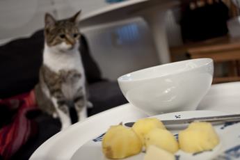 Vyzvedávám mamku a knedlíky do práce :) Ježíšek potřebuje něco schovat, tak to rovnou balí. Taky jsem si přinesla kytku z mrkve a pak si hraju v kuchyni.