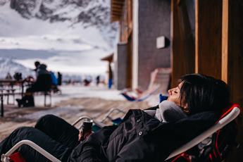 tak tohle probuzení není vůbec špatné a pohled z okna nás baví.. první den vyrážíme na ledovec Presena.. je asi -12 a tak jsem strašně rád, že jsem v Burtonu pořídil tyhle super mega boží kukly přes helmu. Je v tom super teplo a je to hrozně příjemný a každý se nás ptá odkud to máme:).. pohodový den plný sluníčka a prašanu, pecka