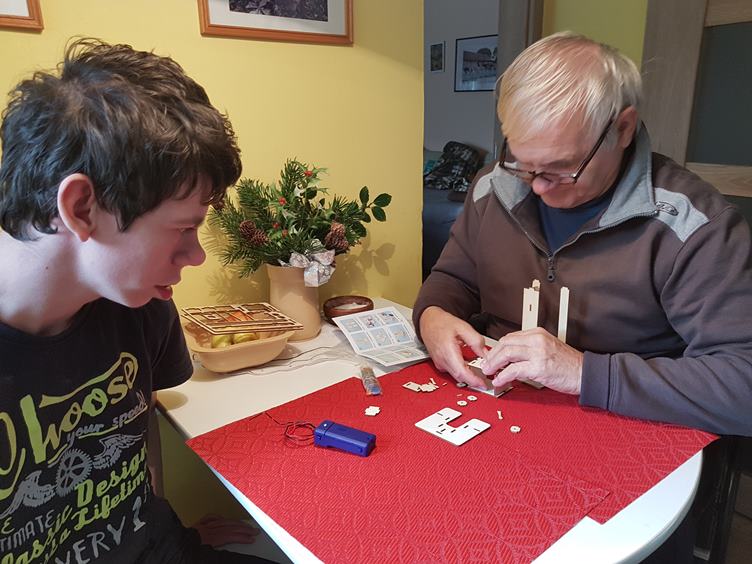 Pondělí 28.12.2020. Jsme u babičky, Bárt s dědou sestavují model výtahu. Odpoledne procházka kolem Roudnice nad Labem, nejprve zavřený židovský hřbitov, pak kolem Labe a do Vědomic.