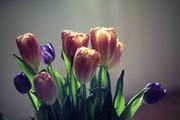 Ráno, vyzerá to na ostrý deň * a ešte aj zamračený * doniesla som Hanke kvetinky * doma vyraďujem, je toho habadej * dávam si ku káve * Berta je pracovitá * zátišie * koncertujem s Dejvom * a žiara v kuchyni
