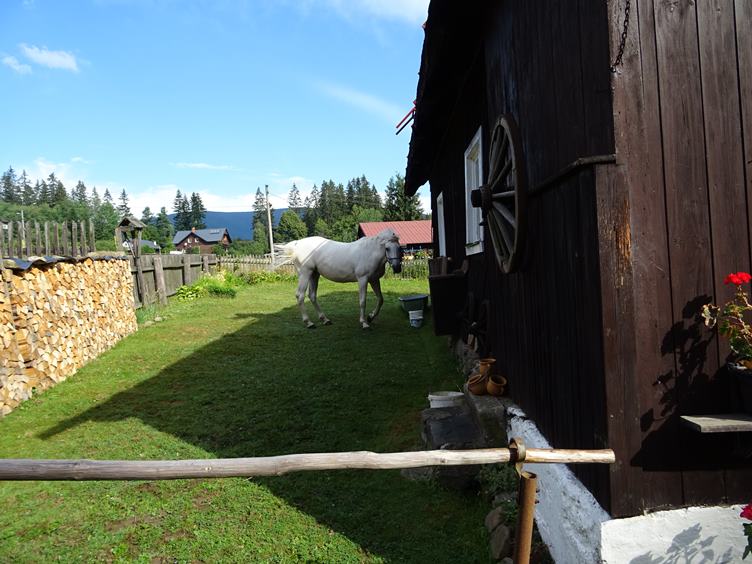 Svítá. Zorinka. Blanka se pase v okolí chalupy. Ve stínu se jí dobře pase. Ne jen barvami, ale i sádrou, vytvořil dědeček /rok narození 1904/ plastický obraz, který zdobí pokoj chalupy. Zorinka. Červík je malebná osada. Překvapení, dnes jsem našel trochu lišek. Blíží se večer.
