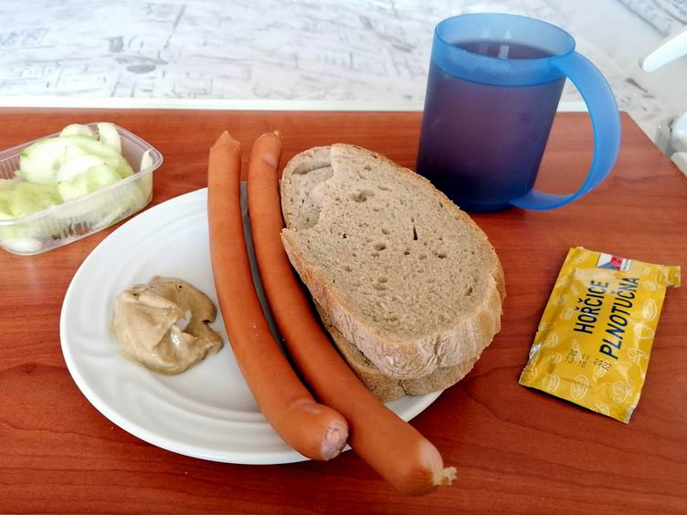 1- dobré ráno, je 6:01... :-) 2- včera jsem si koupila i nějaké dobré pití... 3- po vizitě bývá mazání, léčí mi tady i ty fleky na rukách... 4- na oběd kuře s kuskusem... 5- lušťovka je příjemná změna od čtení... 6- na pokoji mám klid, Peťa někde venku a Magda dnes odjela na dva dny domů... 7- při večerním ošetření fasuju antibakteriální mýdlo na ráno... 8- kuk... 9- večeře