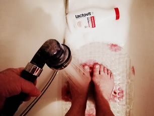 1- místo na noze, které mě ještě zlobí... 2- před mazáním osprchovat... 3,4,5- k obědu přírodní řízky, taky docela rychlý oběd... 6- Zbyšek na odchodu, asi do Chałupek na zápas... 7- trochu jsem se chytla úklidu... 8- pak čtu... 9- ... a po očku sleduju MS ve volejbale, abych mohla Zbyškovi pak říct jak to dopadlo... :-D
