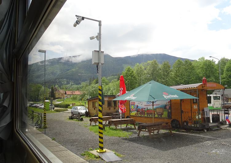 Čertík. Prší. ..a za chvíli leje. Opouštím Staré Hamry. Kočka na zastávce. Na Ostravici přestupuji na vlak. pivo. Odpoledne. Holub se neměl dlouho k odletu, i když jsem ho zblízka mobilem několikrát fotil.