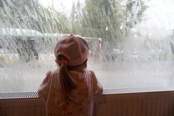 Po práci som zašiel s Dankom a deťmi na pivo na terasu. Zastihol nás tam dážď a krúpy, tak sme sa presunuli na hranolky a pivo dovnútra.