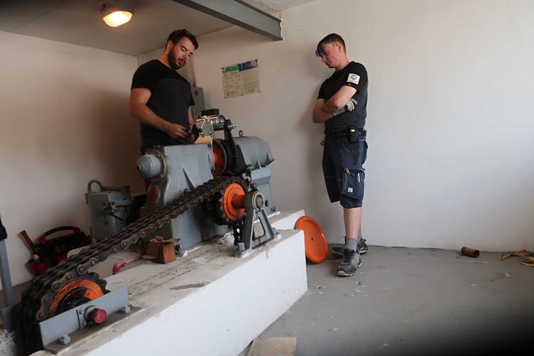 Posnídám prasárničku, zámečníci maj oplechováno a zařezávají oblouky, vadný mucholap a nářezák, výměna brzdy výtahu, odpoledne dělám doma