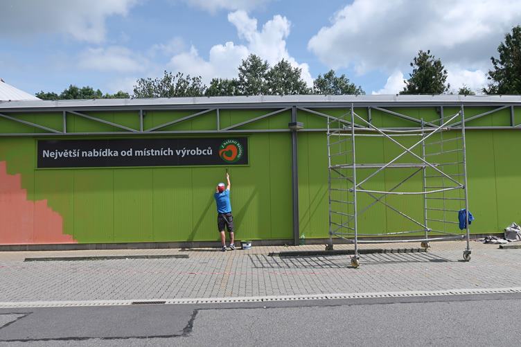 Lehce posnídám a jedu stříkat Roundapem, čekač, fasáda na Ternu, odpoledne jedem do Lhoty něco dělat