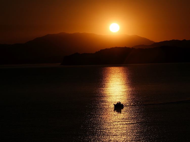 Východ Slunce nad pohořím v Albánii … po snídani celý den po plážích …