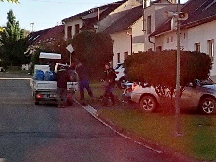 Hasiči sbírali staré železo... My jsme zajeli na hrob taťkovi do Vítkovic... Uprostřed dům mého dětství v Porubě...