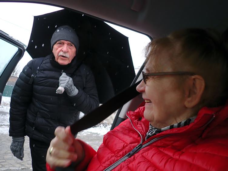Náš kostel ve sněhové krajce... Italský sýr burrata z Lidlu na vikingském tácku z Viking Ship Museum v Dánsku... Vyorávání cukrové řepy... V Holešově na parkovišti u polikliniky... Knihovnička v tamější čekárně s nabídkou červené knihovny... A v ní setkání bývalých kolegů... Rozhovor v otevřených dveřích auta pod deštníkem a na sedadle... Na návštěvě v Dobroticích... A holešovské retauraci Archa Laďa telefonující s Oldou...