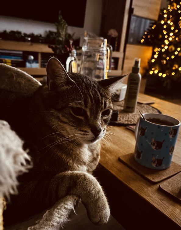 Máme doma maróda, a tak mám ráno s kávou v obývačke s Hugim 😻 Raňajky 👌 A potom čítam list, ktorý som písala otcovi pred 41 rokmi 🥹 Je mi zvláštne 😔 Manželín je maród a má chuť na krupicovú kašu - nech sa páči 🫶 Idem na vzduch - náš vchod už zvianočnieva 🎄 Holíčsky zámok ke plný svetielok a mne sa páči moja rozmazaná fotka 😍 Posledné vianočné nájupy 😊 Svetilke na strome 🙌 A kocúr pod stromom so svetielkami 🤣❤️