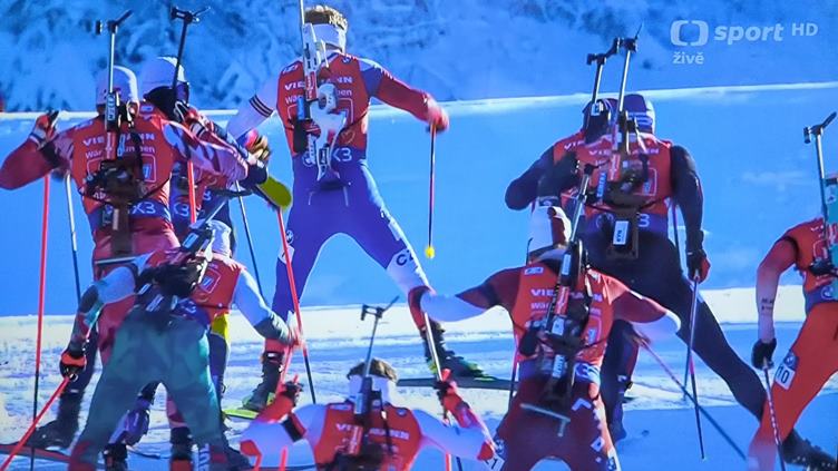 (1) Dopoledne moc nesněží, tak ještě navozím čtyři kolečka dřeva do šopy (2) Biatlon, byli jsme šestí ve štafetě (3) Oběd (4) Stíhací závod žen, sestry Oebergovy obsadili první a třetí místo (5) Po obědě začlo hustě sněžit, toto auto bylo ometené. Odhážu sníh, abychom mohli odjet. Na dálnici jsme jeli 60-80 km/h. Většina řidičů jela v koloně, moc "divočáku" nebylo (6) Močím nohy (7) V Ostravě tolik sněhu není (8) Oddychovka "Neštěstí 2" (***). Tak končí můj šestistý šedesátý šestý week.