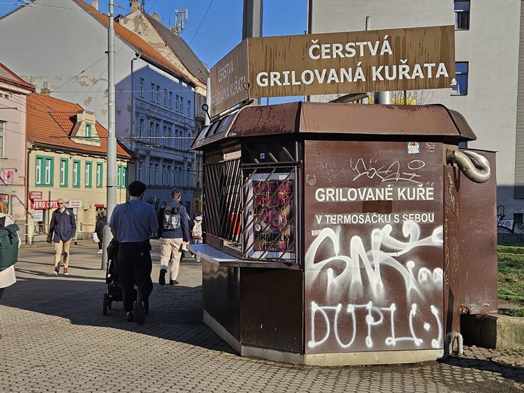 Pátek 13.3.2026 Tenhle stánek s kuřaty je na Palmovce legendární. V synagoze bude výstava. Zoom s holkama z Liberce. Jedu do školy. Bárt nejedl, tak jí v parku. Nákup a jedeme k babičce. Jenže Bárta bolí břicho, tak se raději zase večer vracíme do Prahy. Ach jo.