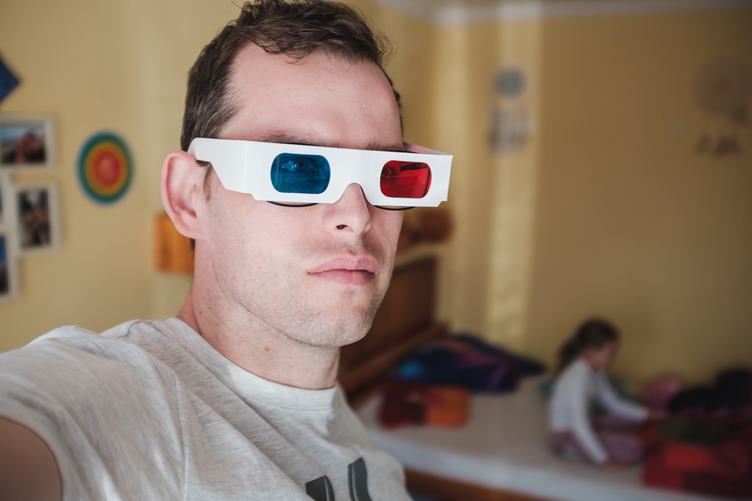 Dneska se ochladilo a přidal se vítr. Hned jak se probudíme, tak zvoní koledníci, ale potom už přijdou jen jedni a konec Velikonoc. Tak jdem s Eliškou na brusle před barák a ta se u těch bruslí akorát vzteká. Bojí se spadnout, takže pořád chce, abych jí držel a chytal. Po obědě vyzvedneme dědu a jedem do pečovateláku za babičkou. Už jí nijak nerozhazuje, že nezná naše jména. Připadalo mi, že poznala akorát dědu. Péťa s Vendou odjeli do Prahy a my jsme v Ostrově na bytě sami. Dnes má Vendulka svátek. Ano, na Velikonoční pondělí má Vendulka svátek - jednou za 11 let. :) Cvičím oči pomocí tranaglyfů.