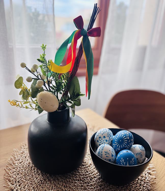 Ahoj Biela sobota, pozdravuje ťa fešák Hugi 😻 Po včerajšku kontrolujeme tlak 🙏 Veľkonočná výzdoba u nás domka 🥰 Kačka, lokše a kapusta - mňam 👌 V telke ide Titanic a my pri ňom po dobrom obede leňošíme 🤗 Ku kávičke si dáme koláčik 🫶 Nakukneme do vzácnej knihy 🙌 Pomojkáme sa s pojladom ❤️ A obdivujeme večerné zore a západ slnka - bol to fajn deň 😍
