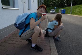 1.Poslední den dojídáme všechny zbytky, proto si namažu pořádnou vrstvu marmelády. 2.Už stěhujeme zavazadla do auta. 3.První zastávka je až za hranicemi. Jana pije kofolu, ne černý pivo. 4.Další zastávku máme v Litomyšli na fafe. 5.V takové pěkné hospůdce jsme si poseděli. 6.Kdyby bylo víc času, šel bych se ještě pocourat po městě. 7.Na poslední zastávce dáváme nanuka a kafčo. 8.A zase z auta nanosit všechno domu. 9.Večer chci sledovat Persejdy, ale počasí mě zradilo.