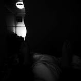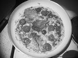 V odstínech šedi.