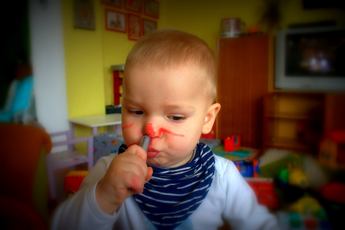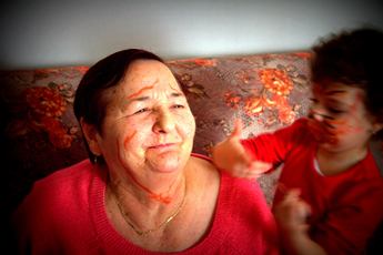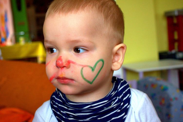 z plesu jsem si místo kocoviny donesla pěknou rýmu :(... takže jsem vymyslela domácí zábavu barvičky na obličej..a měly obrovský úspěch :))..Eliška tygřice...Ondrášek si barvičky zkoumal po svém :)..a pak to nabralo grády..jen tatínek nestačil valit oči :)..pomalovaní skončili naprosto všichni..včetně babičky..veselé odpoledne se zakončilo v trošku smutnějším duchu..odjela nám teta Lenka...doufám že nás brzy zase navštíví :)..