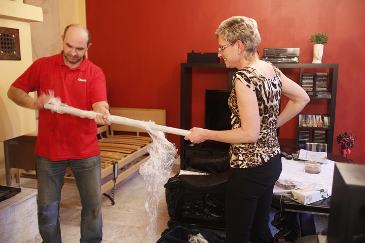 (1) Ježek (kolega) dostal ježka (dá se sež...) (2) Za mámou, už jí to končí (3) V pokoji je již sama (4) Rychle na poštu pro (5) balík (6) Dovezli nám postel a snažíme se pomoci (7) Už je připravena (8) Balík rozbalen, nainstalován a vyzkoušen :-) (9) Hela vaří na víkend