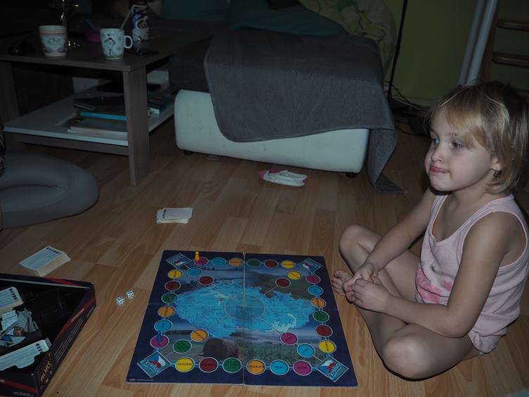 1 Ráno máme opět pomalý rozjezd - 2 Ale když se rozjedou, stojí ten bordel za to - 3 Týnka si hraje na princeznu - 4 po obědě si chvíli hrajeme s pexesem - 5 A pak si společně dáme Česko - 6 Když dorazíme na skauty, je už pěkná tma - 7 Přijeli jsme první, tak má Týnka klubovnu chvíli pro sebe - 8 Svačina na rozloučenou s kamarády - 9 doma Vlaďka dodělává čerstvé lívance pro nás