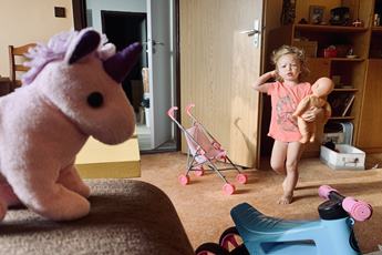 Vendulka jede na terapii, tak se procházím s Eliškou centrem a potkám kamarádku Peťu s kočárem. Vyměnim struny na kytaře a Lukáš Pánek se mi bude starat o web, tak mu uděluju přístup.