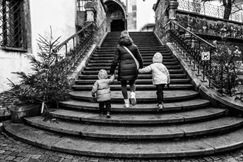 Je tu ráno. Děti v okně zevnitř a pak i zvenku. Aneb ubytování v Krumlově dýchá historií na každém kroku. Dopolední vycházka . To město má prostě kouzelnou atmosféru. Domečky na ledničku. Jen který jediný vybrat? Po obědě se jdu během spaní dětí projít sám. Potkávám i tohohle pána, který si vzpomínky na Krumlov fotí, ale i kreslí do notýsku. Naše společné foto na vyhlídce u zámku. Dá se ve městě jako je Krumlov koupit dárek dětem za pade? Ano dá! Dětská foukací harmonika má úspěch! Užíváme si, ale víme co se včera stalo. Nemohl jsem tomu uvěřit. Večer v okně zapalujeme symbolicky svíčky.