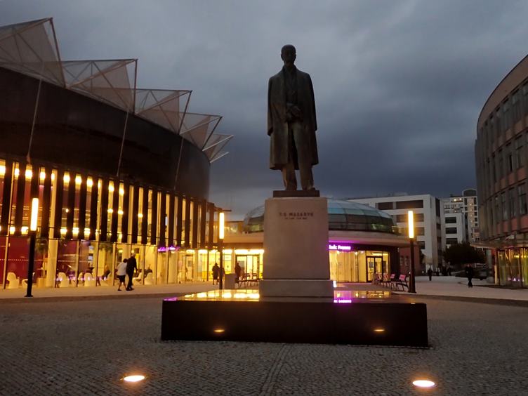 Zastihl jsem popeláře... Petka proti světlu... Drátěný pes před zlínskou filharmonií... Ve výtvarce skládání velkého obrazu z pláten jednotlivých studentů... Paleta z igelitu za čtyři koruny - nekupte to :)... Iva a Marta... Černý pták na schodišti... A černá socha Masaryka před zářící falhormonií...