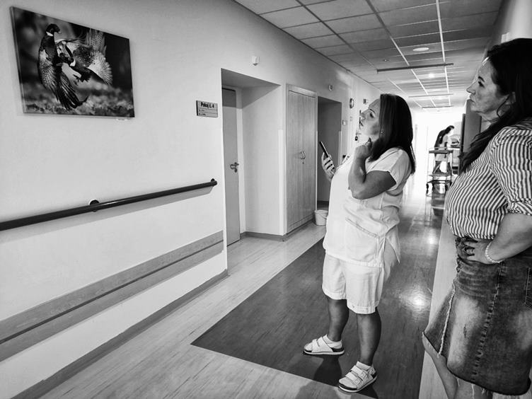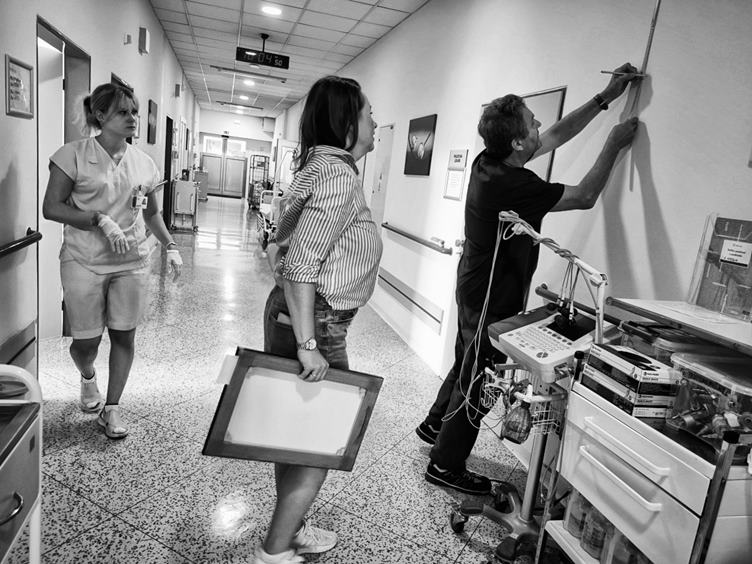 1. Anežka si do školky vyrazila s koženou kabelkou, kterou jí poslal Přéma 2. Cestou do nemocnice jsem u Lidlu potkal kamaráda od zahradníků Biopas 3. S Kamilou jsme dnes v rámci OknoVen zavěšovali obrazy z posledního ročníku na jejich definitivní umístění na Interně 4. Nezdálo se to, ale bylo toho dost 5. Pár kousků doplnilo ještě volná místa na Urologii 6. Po obědě jsem zas nachystal Filiho a Anežku na plavání a Pavla si je převzala přímo z autobusu 7. Cestou domů jsem se stavil pro balíček v Alzaboxu 8. Den praní kompresních punčoch 9. Není nad to, když je doma veselo