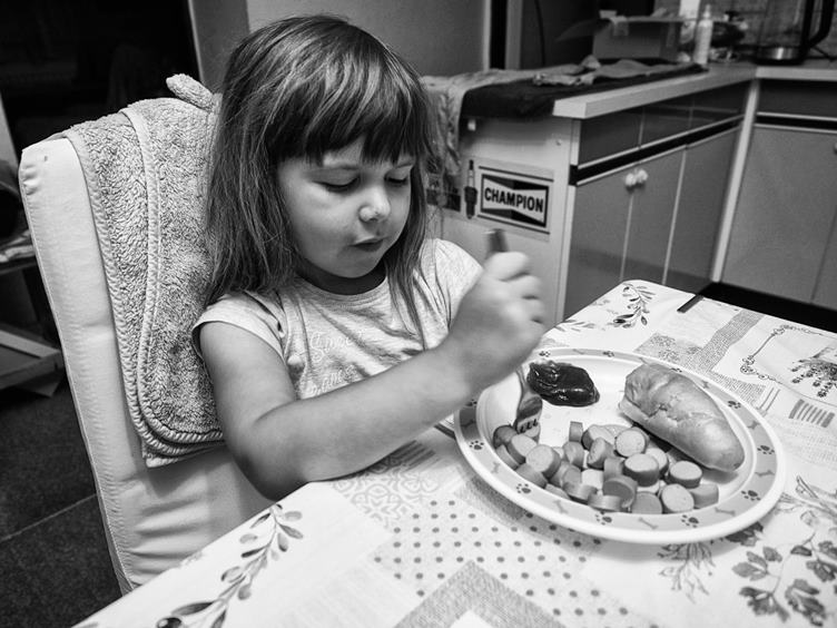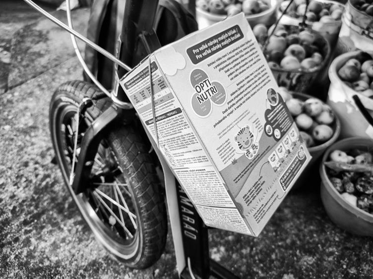 1. Anežka si ráno řekla k snídani o párek 2. V Albertu mají nový merch, vybral jsem si myš, bo ta moje stará už nějaký čas blbne 3. Všude kolem baráku máme nějaká kvítka, která je třeba zalívat 4. Drobné věci se dají vozit na kolobce nejrůznějšími způsoby - tady pomohla gumička 5. Hlad je nejlepší kuchař 6. To tak sečete trávu před barákem, když u vás najednou přibrzdí váš bývalý šéf 7. Filip drandí čím dál líp, brzo bude určitě tlapkat i bez chodítka 8. Začali jsme s rohlíkama 9. Naloupal jsem si pistácie na mletí... míchám je s chili a je to výborná směs do rýže nebo salátů