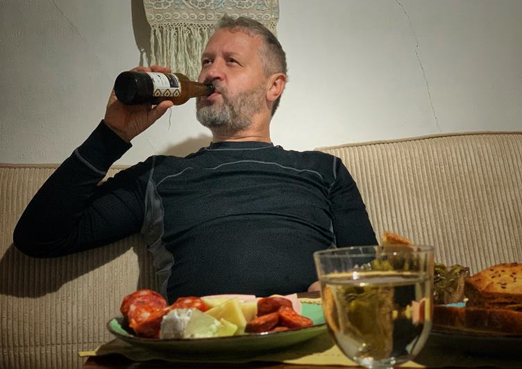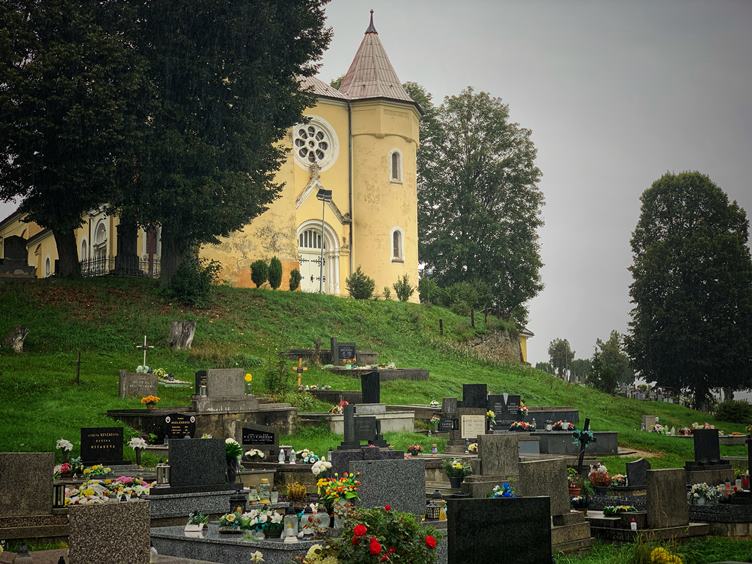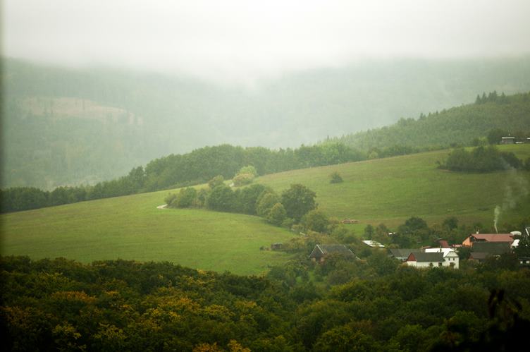 hlásí celý den déšť, ale ráno bylo jště příjemně a tak se touláme s Kuki okolo hostince, k de jsme ubytování a já si fotím...dnešní den je srdcovka- jedem Moravské Lieskové, kde se narodila a žila moje hodná babička, kde máme ještě nějaké příbuzné a hrob prababičky a pradědy...leje jak z konve. po rozmluvě s jednou stařenkou nacházím dům předků, ale již v něm žije někdo jiný..na hrobě milion hrobů a když už to chci v tom dešti vzdát, úplně náhodně nacházím hrob prababičky a pradědy i s jejich fotkami..mám radost ..muž v jedné restauraci a Kuki v morké trávě..poslední večer si muž užívá