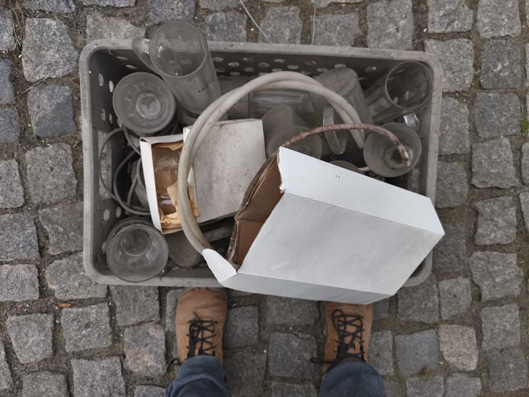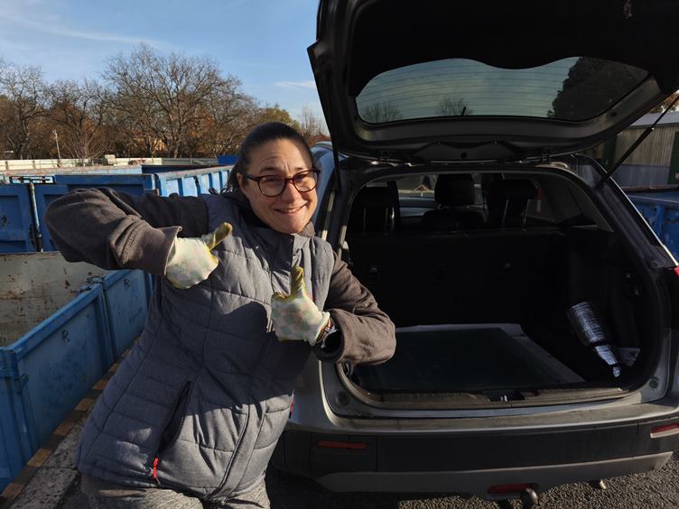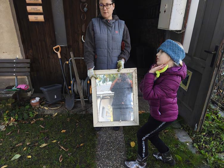 Od rána vyklizíme garáž ... Odvážíme sklo a zrcadlo ... Ve sběrném dvoře ... Hotovo ... Další práce a jednoduchý oběd ... Adinka odpočívá ... Berou si ji známí ven ... My vyklizíme dál, třeba tátovi půllitry ... Večer jsem grogy.