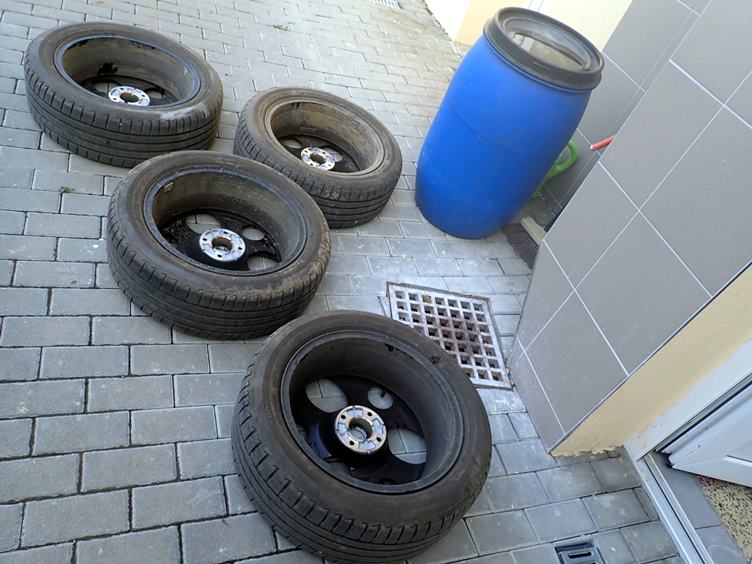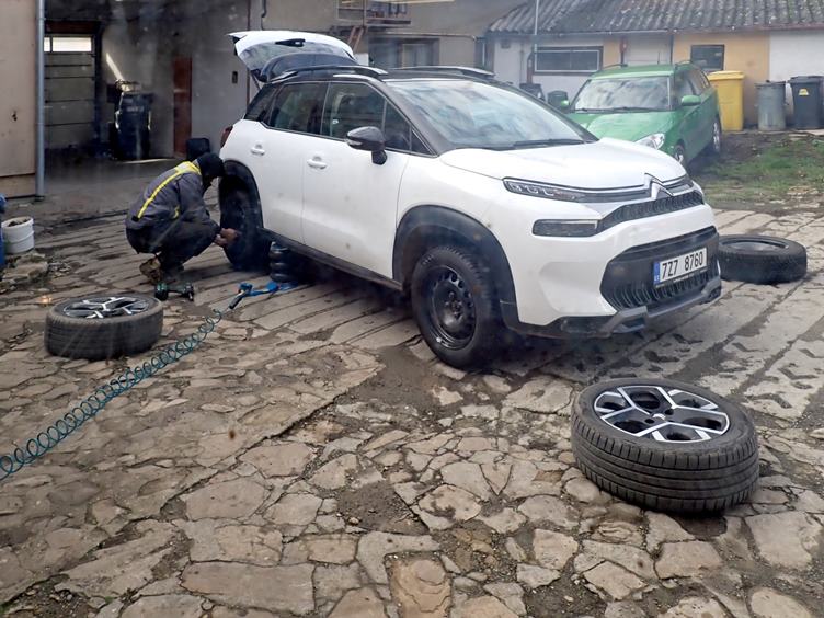 Ranní obloha... Nachystání kol k přezutí na zimu... Cesta do pneuservisu a pokrývači na střeše... Pes v autoservisu... Čelní sklo po bočním střetu se srnkou... Náš přezouvaný érkros... Letní kola se musí umýt a šup s nimi do garáže a zamknout... Lampionový průvod...
