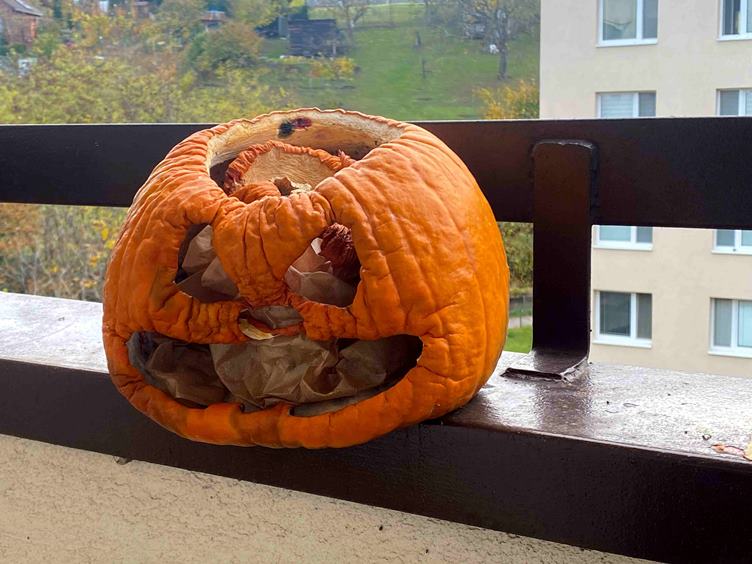Dyňkáč už skončil * cez červenú sieťku - filter * do mesta * a potom stíham trocha fotenie na krúžku * svetlo a tieň - výroba zátiší a iné zábavky * treba si zapísať - to už ja mám ale za sebou, teraz je na rade Rasťo * niekto má nový sveter v krásnom balení * Aliya si cvičí s kokosom * a ja ho taký ušejkovaný potom ochutnám