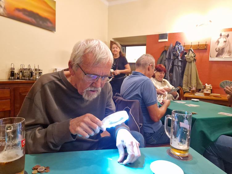 Dnes je krásně … využiji to na úklid zahrady … je to jakžtakž … sluníčko vydrželo až do večera … na taroky jedu hromadnou, v rozkopané Ostravě to není jednoduché (a na obloze se chystá Bobří úplněk) … máme v eurech bulharskou minci a tak to vypadá jako v numismatickém klubu … na Sofinku, to je povinnost dědka … vracím se pěšky … dnes Ostravou táhne se Zdeňkem Roman, našel jsem je ve vinárně …