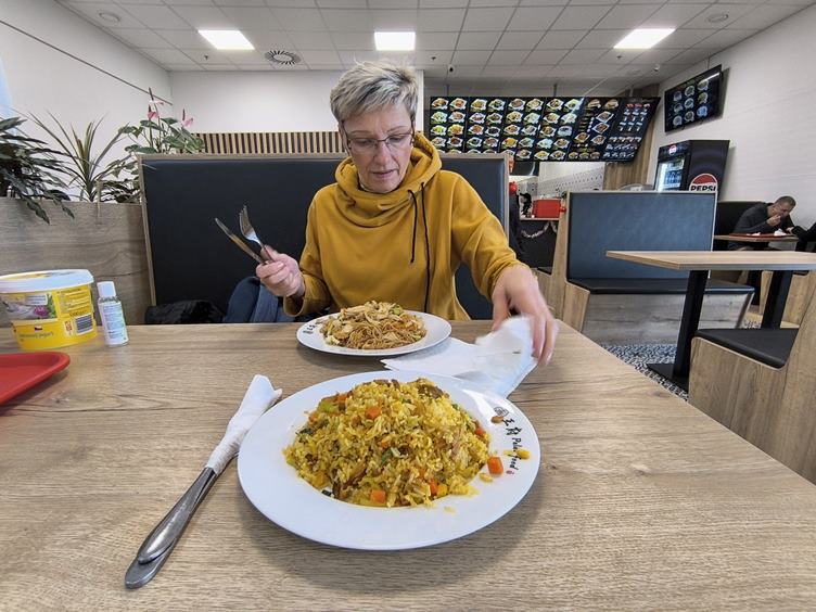 (1-2) Rehabilitace (3) Usazuje se vánoční strom (4) Havárka (5) Oběd (6) Koupíme prkénko na WC a zásuvku (7) Mrzlo (8) Denní tisk (9) Píši komentáře. Hela jela na jógu a pak do Zanzíku. Mi není dobře, kašlu, ale teplotu nemám ...