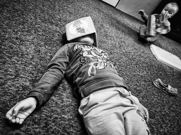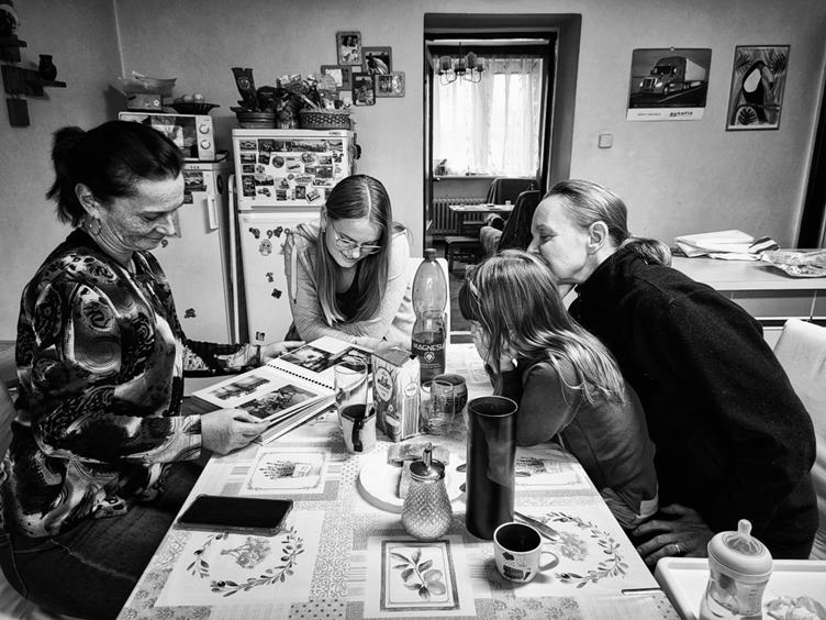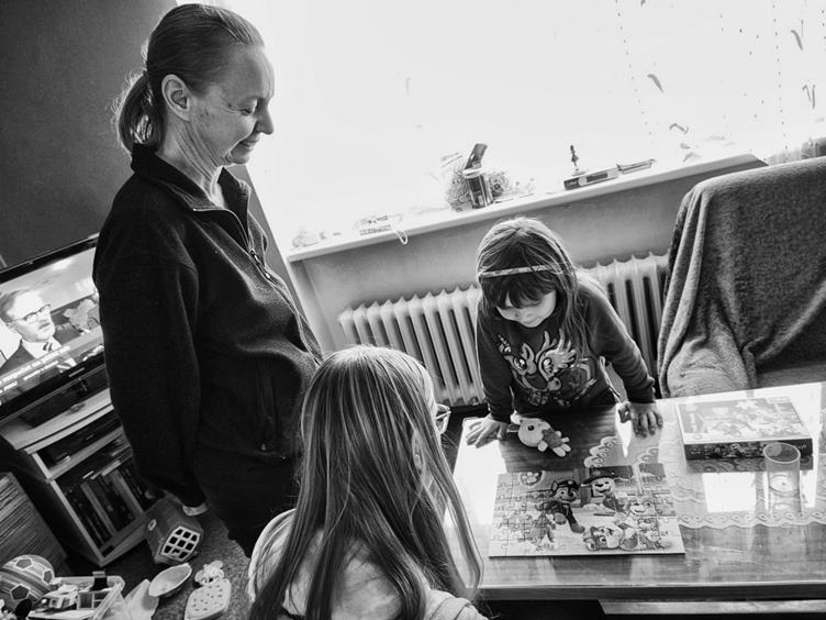 1. Když nemůžu knedlíky, tak obvykle dost zbyde a tak jsem dělal na snídani knedlu s vajcem pro celou rodinu 2. Náš soused a kamarád Adam byl s nohou na operaci ve stejnou dobu jako já 3. Přijela nám vzácná návštěva z Rajhradu. Silva s sebou přivezla i dceru svého nového přítele 4. Fili se nejdřív styděl, ale nakonec neodolal ženskému kouzlu 5. Barča bude učitelkou ve školce a u nás měla krátkodobou praxi 6. Anežka návštěvě ukazovala taneční fotoalbum Pavly 7. Byla to strašně fajn návštěva a z okna mávala celá rodina 8. Rozjetý Filípek se pak už nezastavil a řádil ještě při večeři 9. Anežka si večer hrála na tatínka