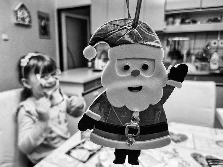 1. Filípkovi dneska snídaně nestačila a musel se dojíst Míšánkem 2. Žehlení vyžadovalo Filiho nepřítomnost v kuchyni 3. Fili nakonec skončil v ohrádce a já se vrhnul na WOL 4. Měl jsem nějaké bolení žaludku a radši jsem si lehnul, přičemž jsme si všiml, že jsem něco zapomněl na lustru 5. Naučil jsem Filípka dělat čerta 6. Stavila se Lenka a spolu s Pavlou pomáhaly Anežce sestavovat sobíky a Santy 7. Já se taky zapojil a poskládal jsem si svého Santu 8. Fili chtěl vyzkoušet, jestli by se koupání nedalo nějak urychlit 9. Nahoře si pak vybíral z mých knížek o fotografii a fotoknih