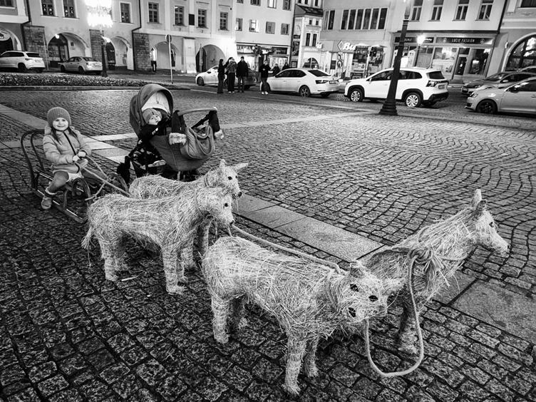 1. Holky jely ráno na poslední letošní bruslení a já na Elišákovi na nákup 2. Dneska se na zvířátka koukali oba 3. Celý den jsme se těšili na vycházku na vánoční Velké náměstí 4. Hlavně kvůli Anežce, která chtěla na vláček a na řetízkáč 5. A samozřejmě nemohla vynechat slaměný betlém 6. Kroměřížské trhy nejsou nic extra, ale kdo chce atmosféru si tu najde a něco dobrého taky 7. Cestou domů jsme s Anežkou dost blbli - na tuhle zídku bych měl ještě nedávno problém vylézt 8. U Alberta jsme se chtěli podívat na kapry a rybář nakonec půjčil Anežce vybavení a nechal ji podržet si jednoho menšího kapříka 9. Filípek se před spaním tulil k babičce